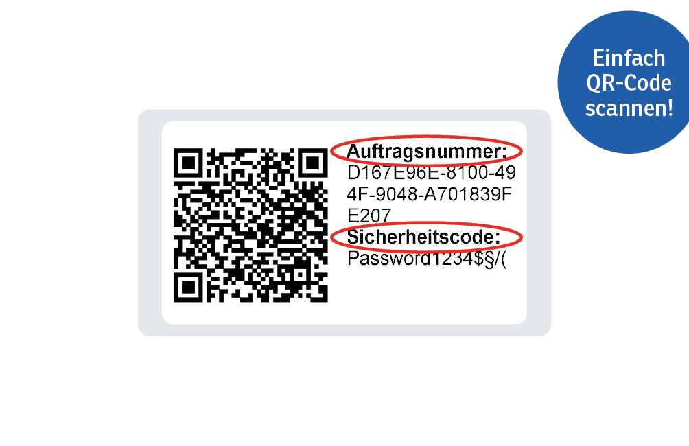 Sie finden die Auftragsnummer und den Sicherheitscode auf der Rückseite des Kärtchens.